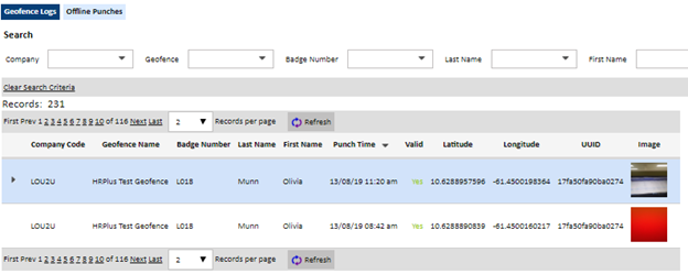 Ø HRplus Time>>Geofencing>>Geofence Logs
